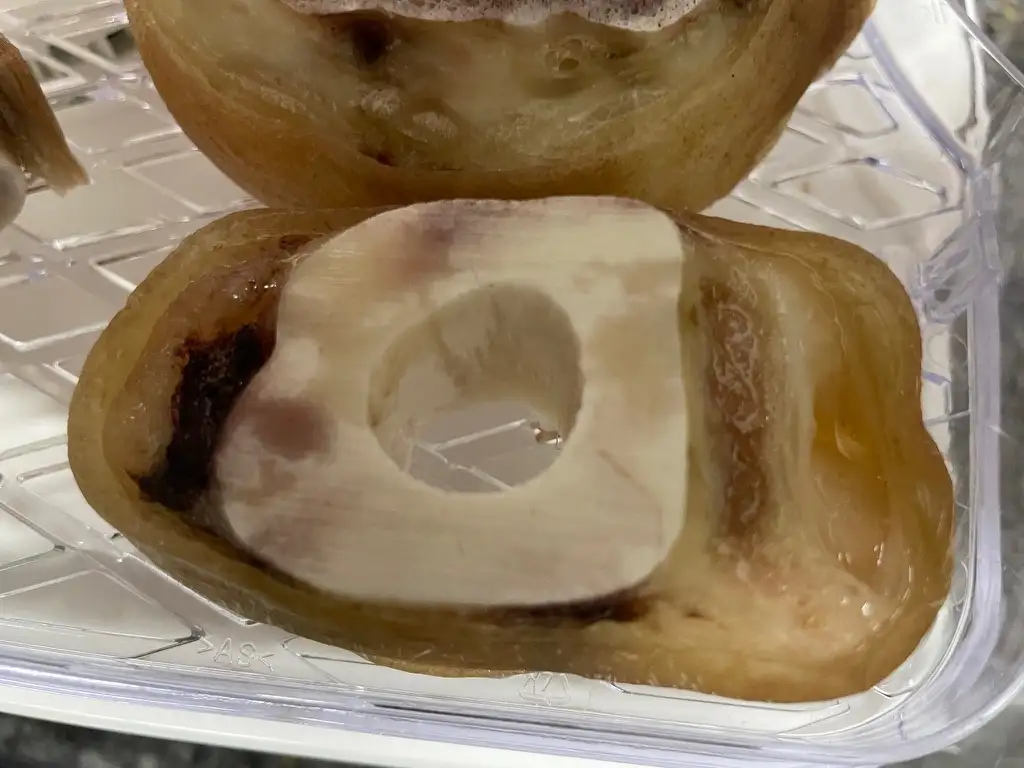 한우 우족의 물기를 제거한 뒤, 온도 60도, 건조 시간 12시간으로 설정하여 본격적으로 건조를 시작하였습니다. 건조 과정에서 뼛속에 있던 기름기가 빠져나오게 되는데 1~2시간마다 한 번씩 키친타월로 기름 제거를 해주었습니다. 강아지가 지방을 먹어도 크게 문제는 없지만 설사나 비만을 유발할 수도 있고, 먹다가 털과 발에 기름이 묻어서 집이 엉망이 될 수도 있다고 하니 최대한 기름을 제거해 주었습니다.