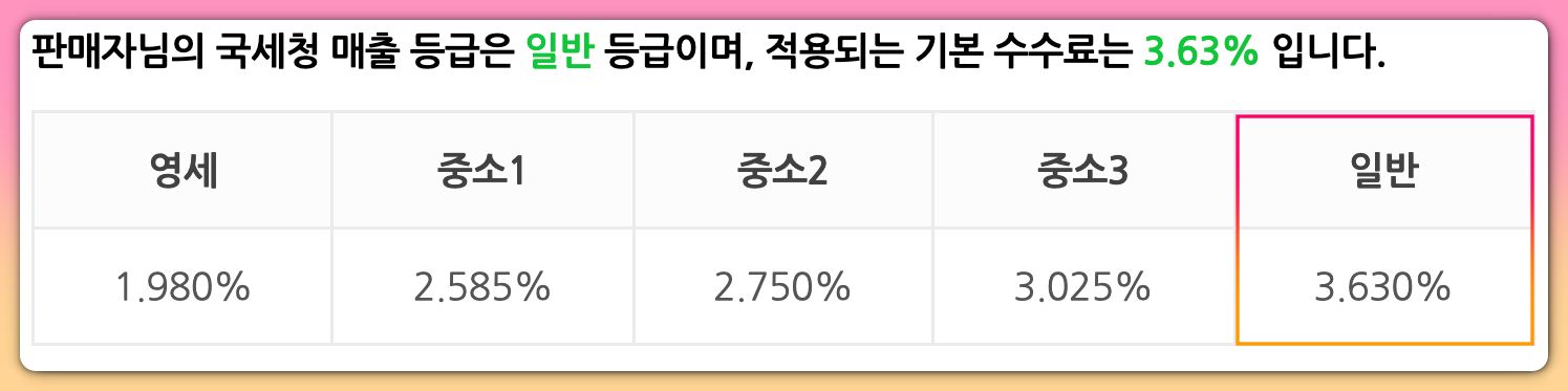 - 2021년 7월 31일 결제부터 국세청에서는 위 매출 등급에 따라 과금을 합니다. 따라서, 결제 수단별 수수료율을 적용받지 않습니다.