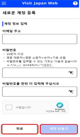 2) 이메일 주소, 비밀번호, 확인용 비밀번호, 인증 체크 후 계정 만들기 버튼을 클릭합니다.